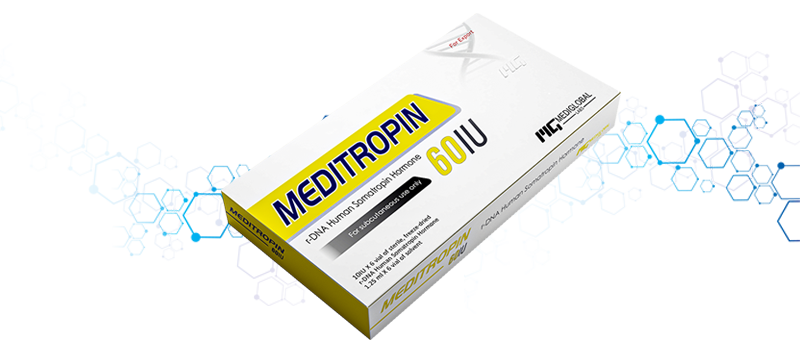 MEDITROPIN (somatropin [rDNA origin]) For Injection is a human growth hormone used to treat growth failure due to growth hormone deficiency. MEDITROPIN is a human growth hormone produced by recombinant DNA technology. MEDITROPIN has 191 amino acid residues and a molecular weight of 22,125 daltons. Its amino acid sequence and structure are identical to the dominant form of human pituitary growth hormone. MEDITROPIN is produced by a mammalian cell line that has been modified by the addition of the human growth hormone gene.